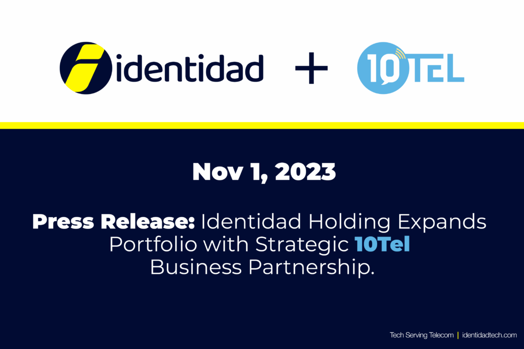 We are thrilled to announce that, effective November 1, 2023, Identidad Technologies and 10Tel have formalized a dynamic business partnership, operating under the 10Tel brand, and seamlessly integrated within the Identidad Technologies Group. This strategic endeavor marks a pivotal milestone for both companies’ commercial strategies, as it fortifies collaborative efforts in Voice, SMS, Managed Services, and CPaaS.